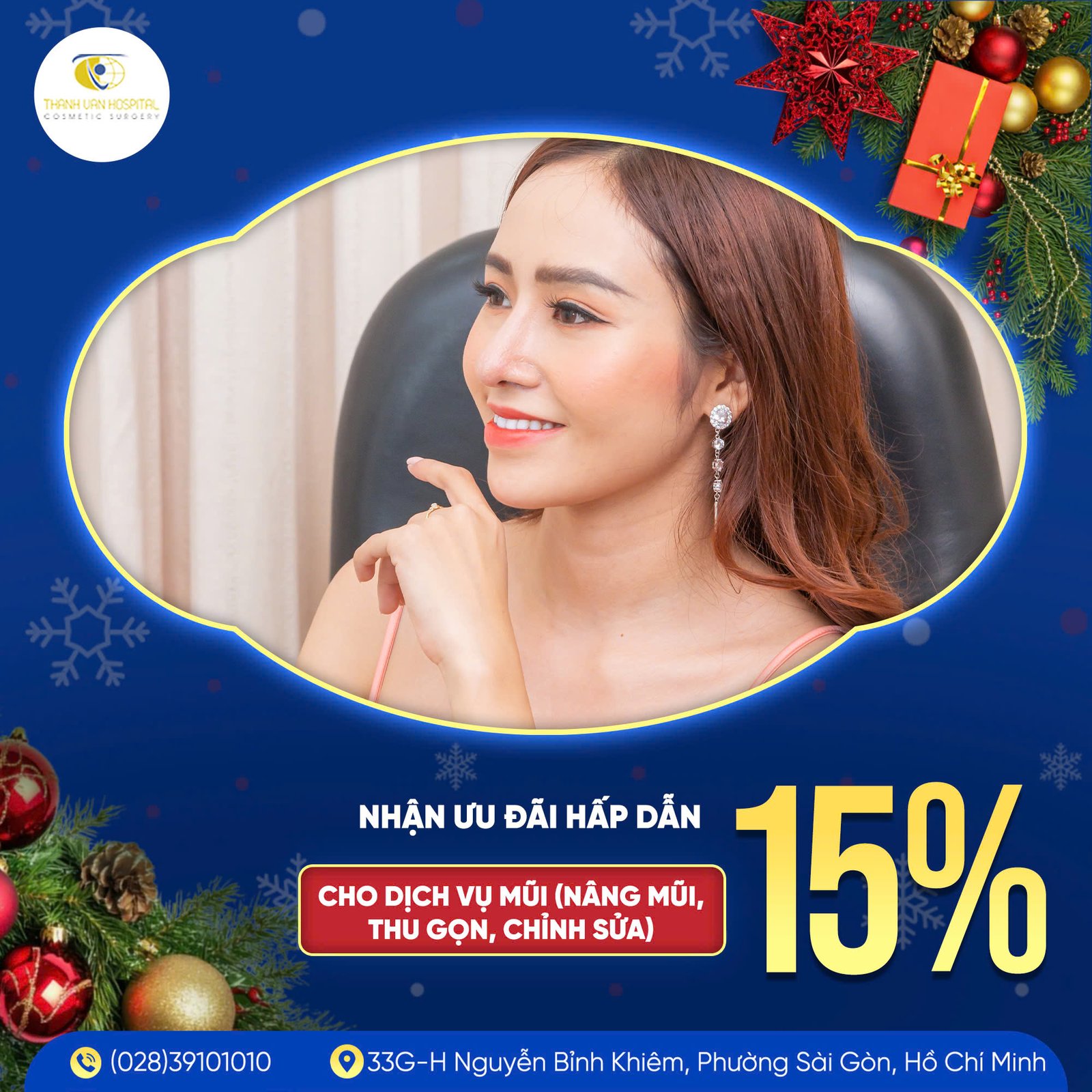Nhận ưu đãi hấp dẫn 15% cho dịch vụ mũi (nâng mũi, thu gọn, chỉnh sửa)